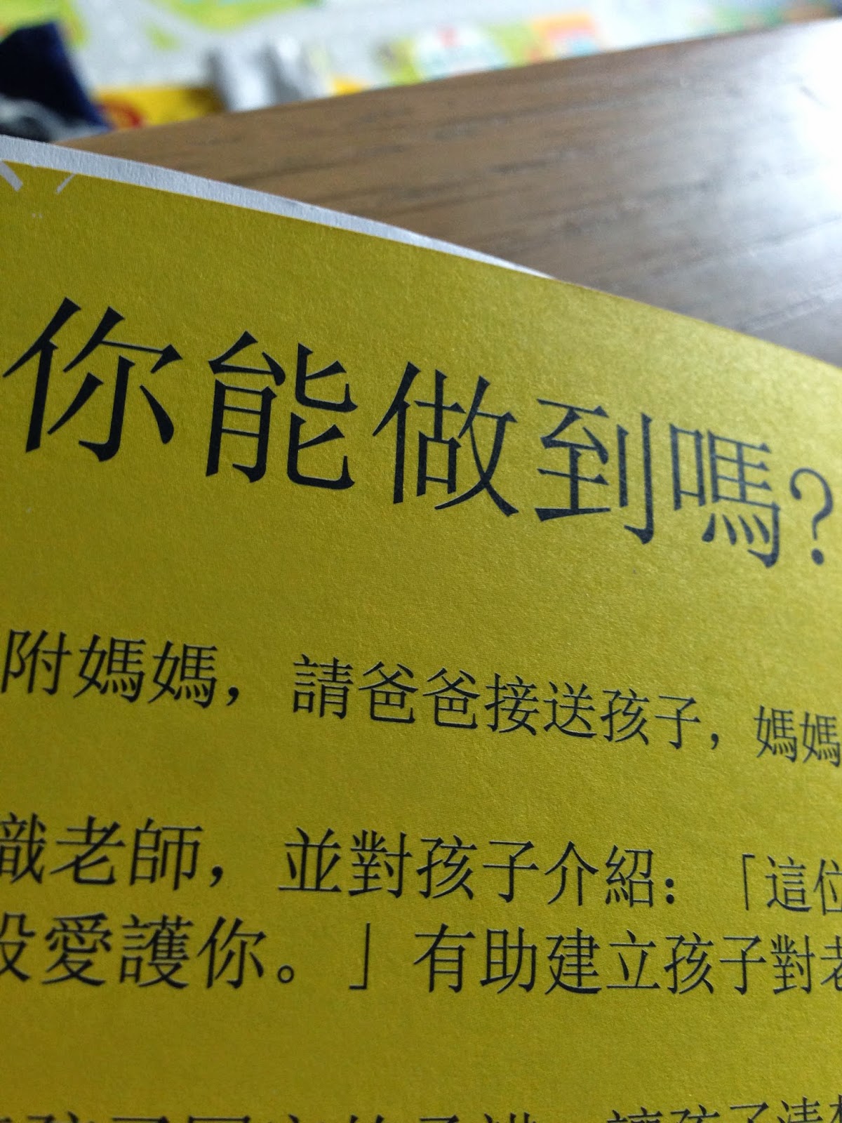 其中有一欄問家長, 你能做到嗎?